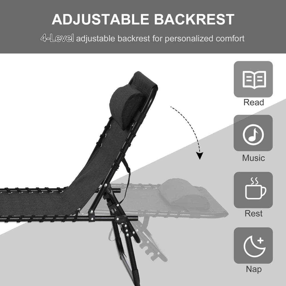 Outsunny Foldable Sun Lounger, Outdoor 4 Level Adjustable Backrest Reclining Chaise Chair, Steel Frame Recliner Chair for Camping, Hiking, Black