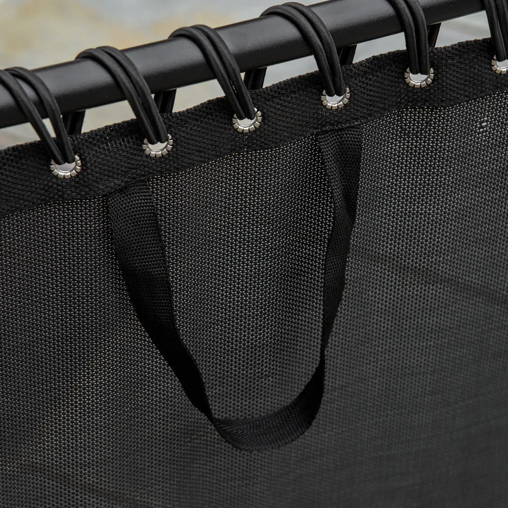 - Stable and cosy: This portable sun lounger is made of powder coated steel frame guarantees a stable standing and the 100% plastic fabric with a double elastic rope suspension system provides a comfortable yet strong support.