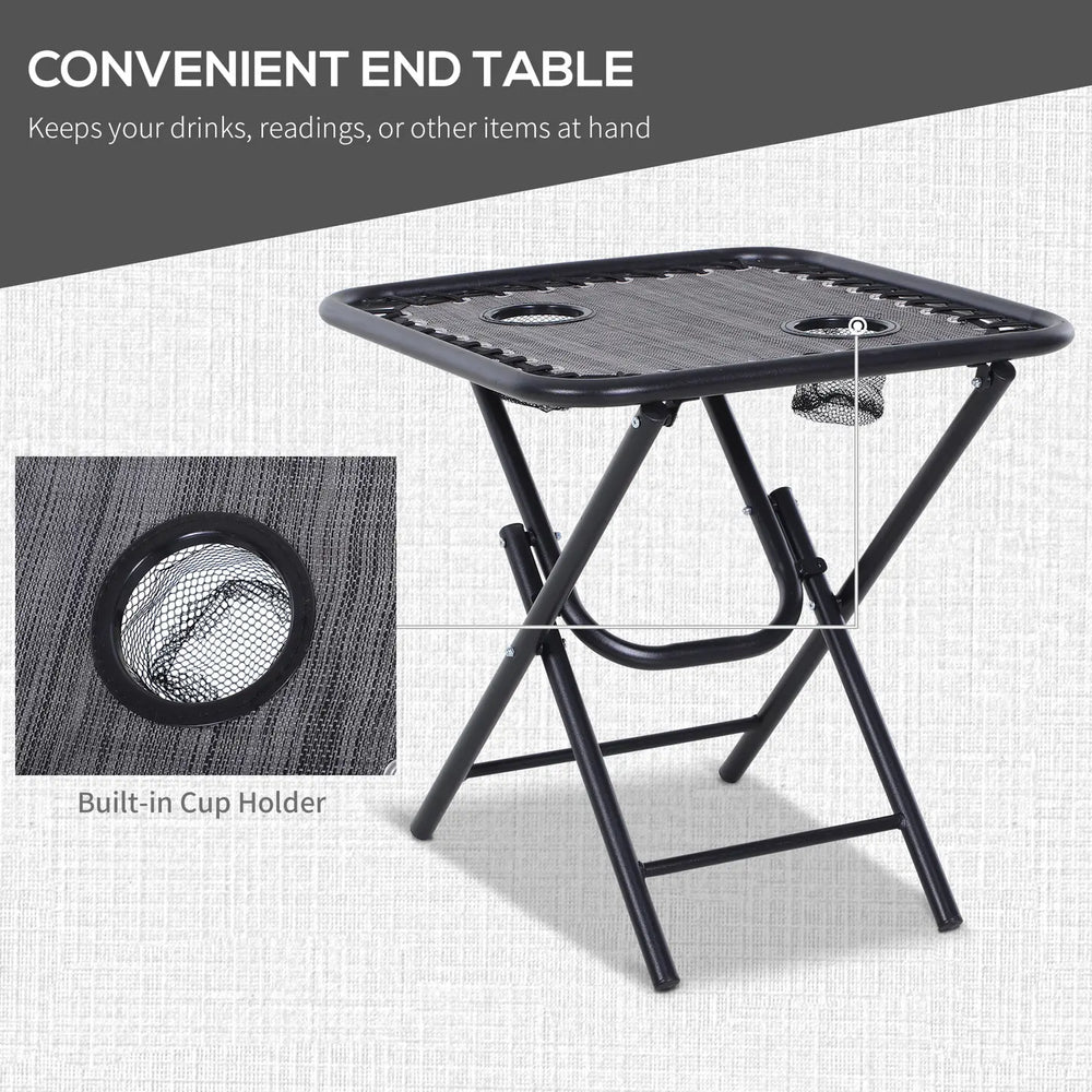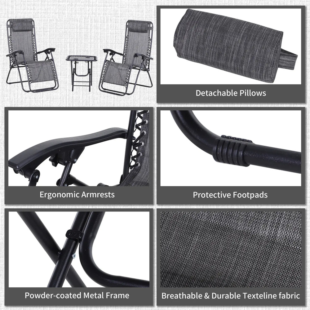 Outsunny 3pcs Folding Zero Gravity Chairs Sun Lounger Table Set w/ Cup Holders Reclining Garden Yard Pool, Light Grey