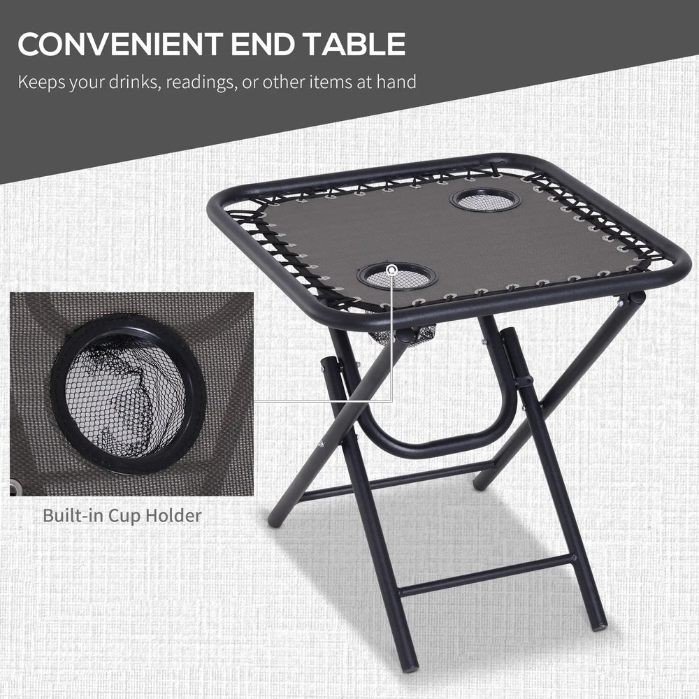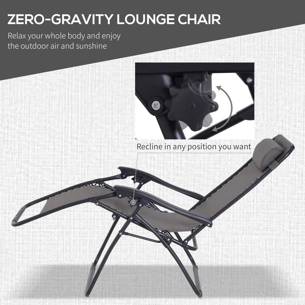 Outsunny 3pcs Folding Zero Gravity Chairs Sun Lounger Table Set w/ Cup Holders Reclining Garden Yard Pool, Dark Grey