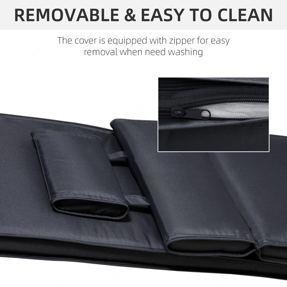 Outsunny Garden Sun Lounger Cushion Replacement Soft Sunbed Reclining Chair Relaxer Pad with Pillow, Cushion ONLY - Black