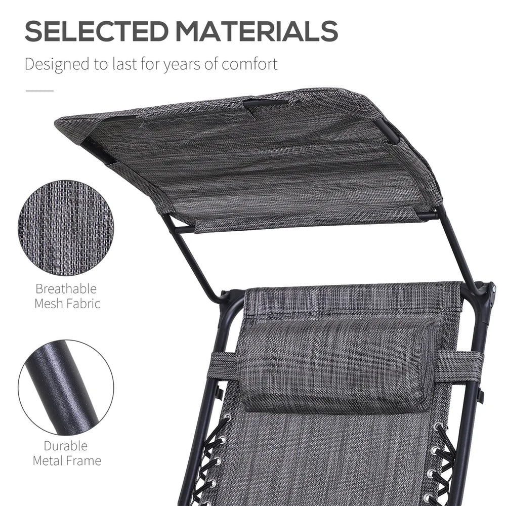 Outsunny Foldable Reclining Garden Chair with Headrest, Zero Gravity Deck Sun Lounger Seat Chair with Footrest, Armrest, Cup Holder & Canopy Shade, Grey
