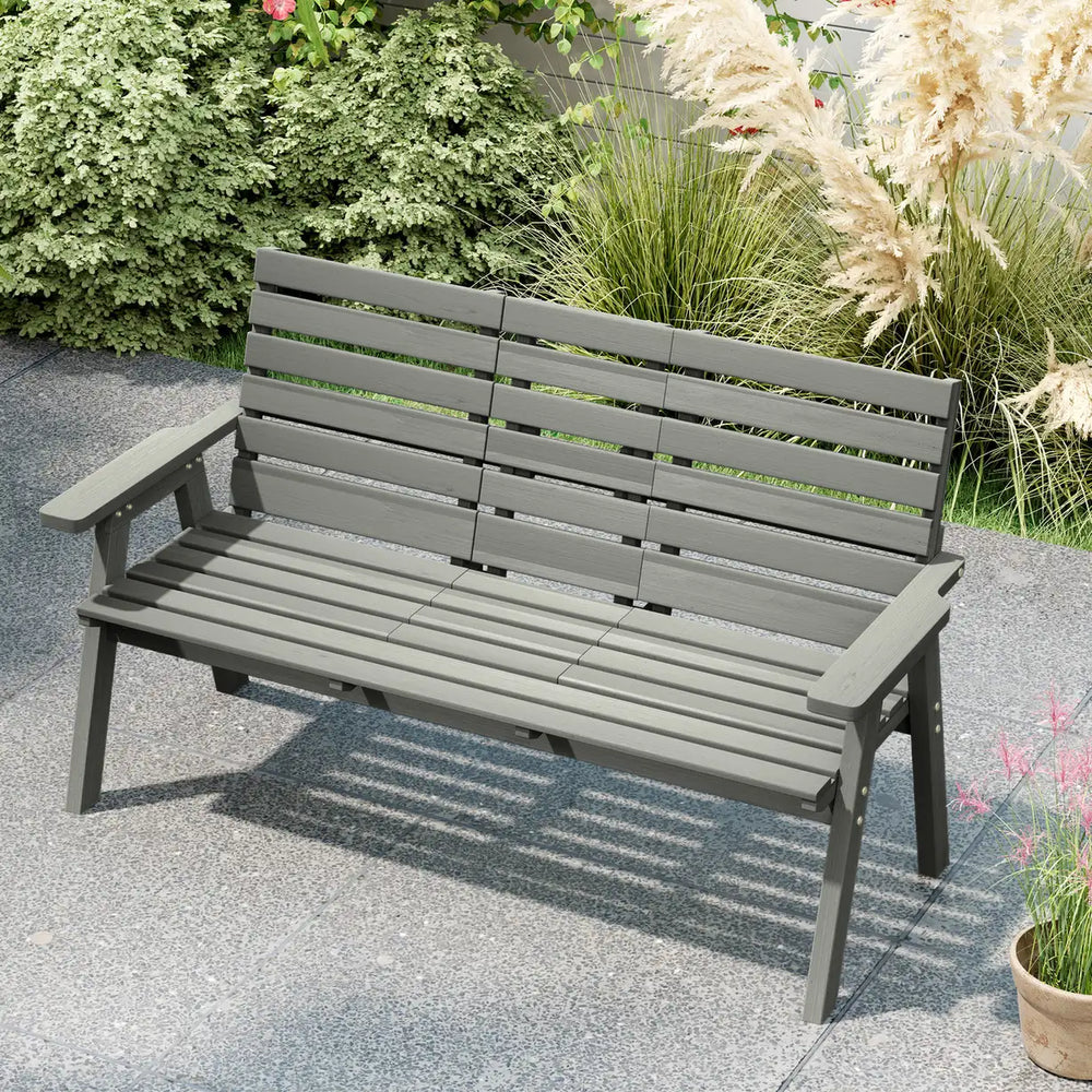 Outsunny Fir Wood Convertible 2 to 3 Seater Outdoor Garden Bench Grey