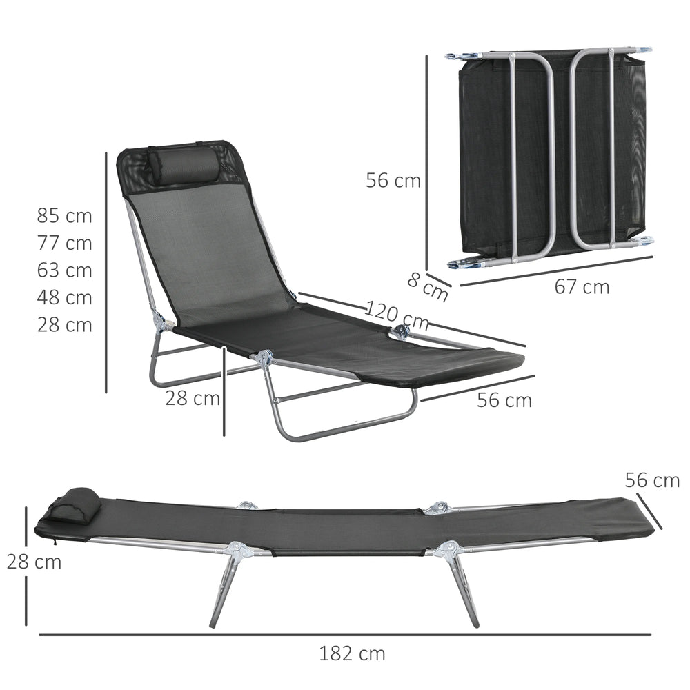 Relax anywhere if your choose, with Outsunny folding sun lounger. Powder coated steel frames mean a strong core, fitted with a soft fabric seat and pillow for comfort. Both feature a reclining back so you can relax to an angle of your choice. Simply fold up and carry to wherever you want.