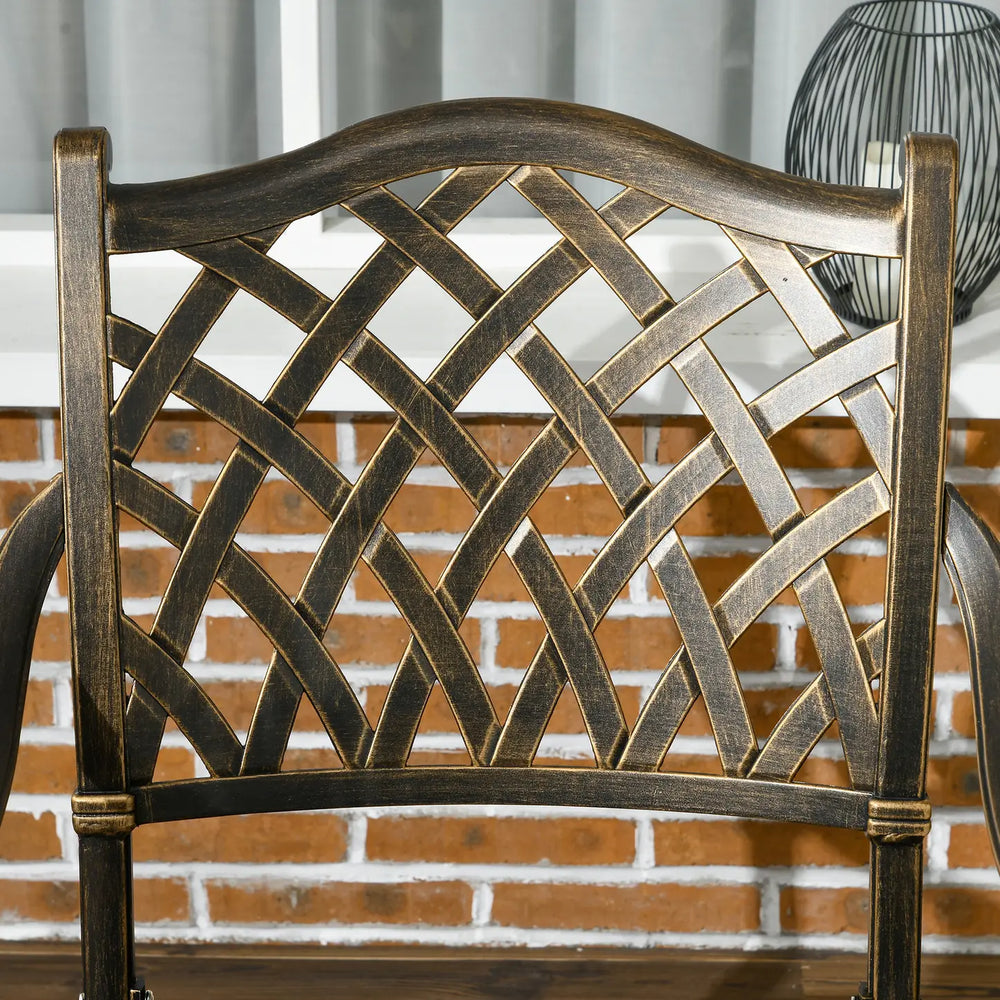 Outsunny 5-Piece Outdoor Furniture Dining Set, Cast Aluminum Conversation Set Includes 4 Chairs and 90cm Round Table with 50mm Umbrella Hole for Patio Garden Deck, Flower Design
