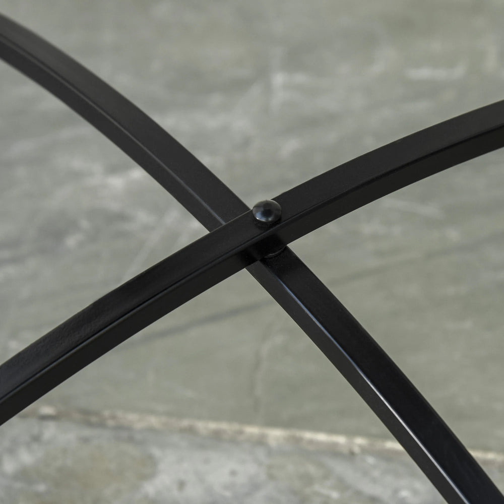 - Metal frame: Powder coated for extra strength, this round table is a tough piece, resistant to weathering and corrosion. Curved legs and bottom crossbar adds stability.