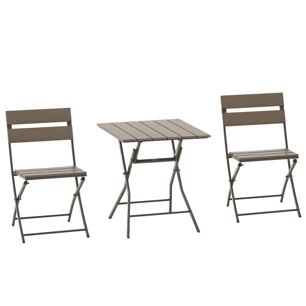 Outsunny 3 Piece Foldable Garden Bistro Set Patio Furniture Set with Table and 2 Chairs for Conservatory Balcony Terrace, Grey is backordered and will ship as soon as it is back in stock.