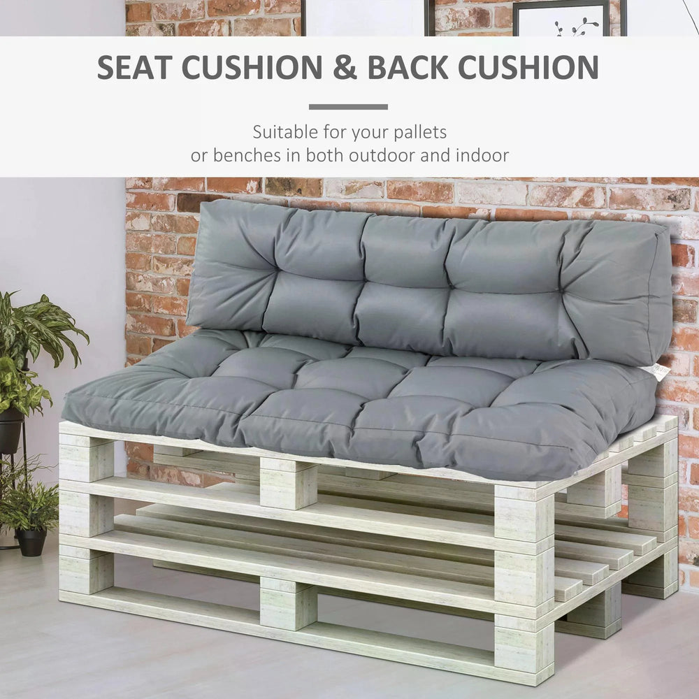 Outsunny 2Pcs Garden Tufted Pallet Cushions Seat Pad Back Cushion Indoor Outdoor Grey