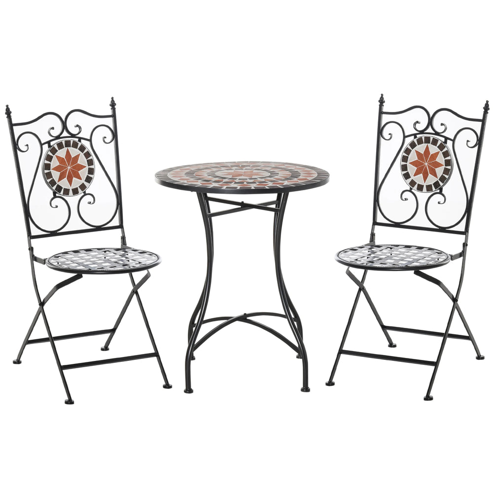 Outsunny Three-Piece Mosaic Bistro Table Set - Multicoloured