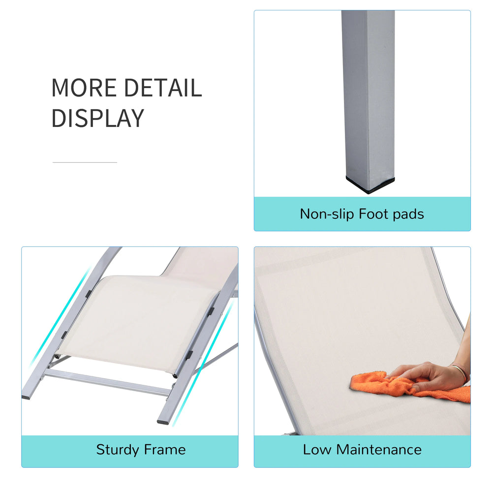 Outsunny 3 Pieces Lounge Chair Set Metal Frame Garden Outdoor Recliner Sunbathing Chair with Table, Cream