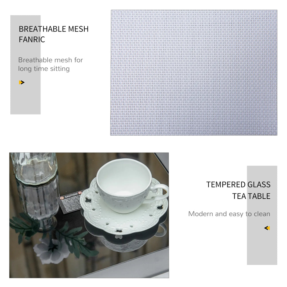 Refresh your outdoor space with the garden recliner chairs set of 3 Outsunny. Using metal for the frame of both chairs and a table, the structure is tough and durable, so it can be used every day. The sun loungers for garden are wrapped in breathable mesh for comfort and smoothness on the skin. The table comes with a thick glass top for a safe and secure holding place. Stylish and functional, this set is perfect for patios, gardens, balconies and any other outdoor space. Assembly is required.