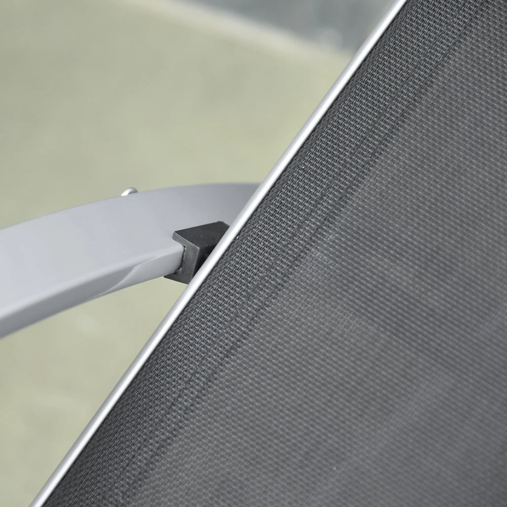 All the relaxation outdoors with company - this Outsunny three-piece set. It comes with two curved sun loungers and a small side table. A metal frame for all pieces means a strong structure, with breathable mesh seats to hold you comfortably. The curved shape of the loungers hug you - extra comfort to support your body shape. Complete with a sleek and safe glass top on the table.