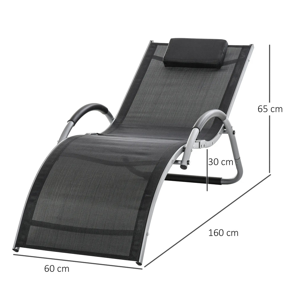 Outdoor lounging just got a lot better. Pair your days outside with this Outsunny lounger for complete relaxation. The frame is made from aluminium to be suitable for everyday use, is crafted into a smooth curved shape that better adapts to your body shape. It's fitted with a breathable mesh fabric seat that holds your body in place, with a removable pillow for extra comfort and support to the head and neck. Finished with foam pads on the armrests and bottom frame part for extra protection.