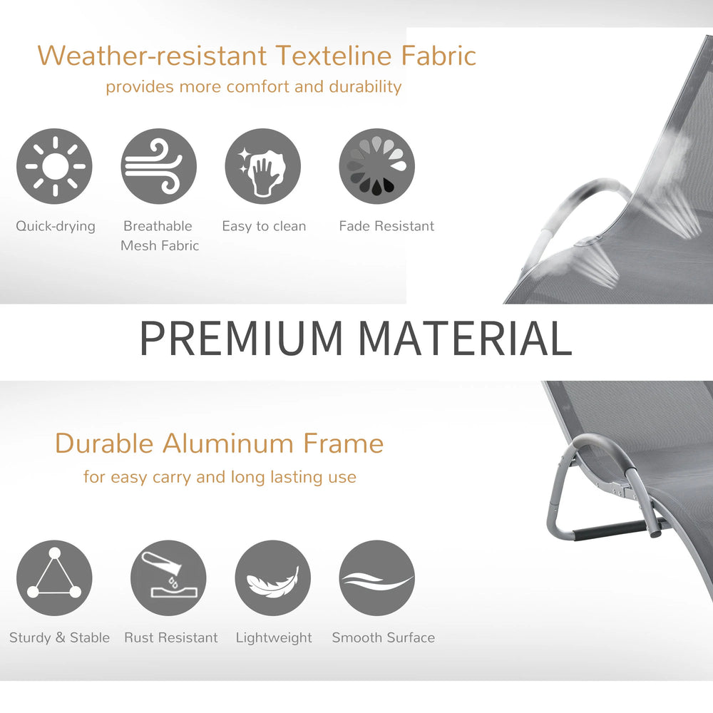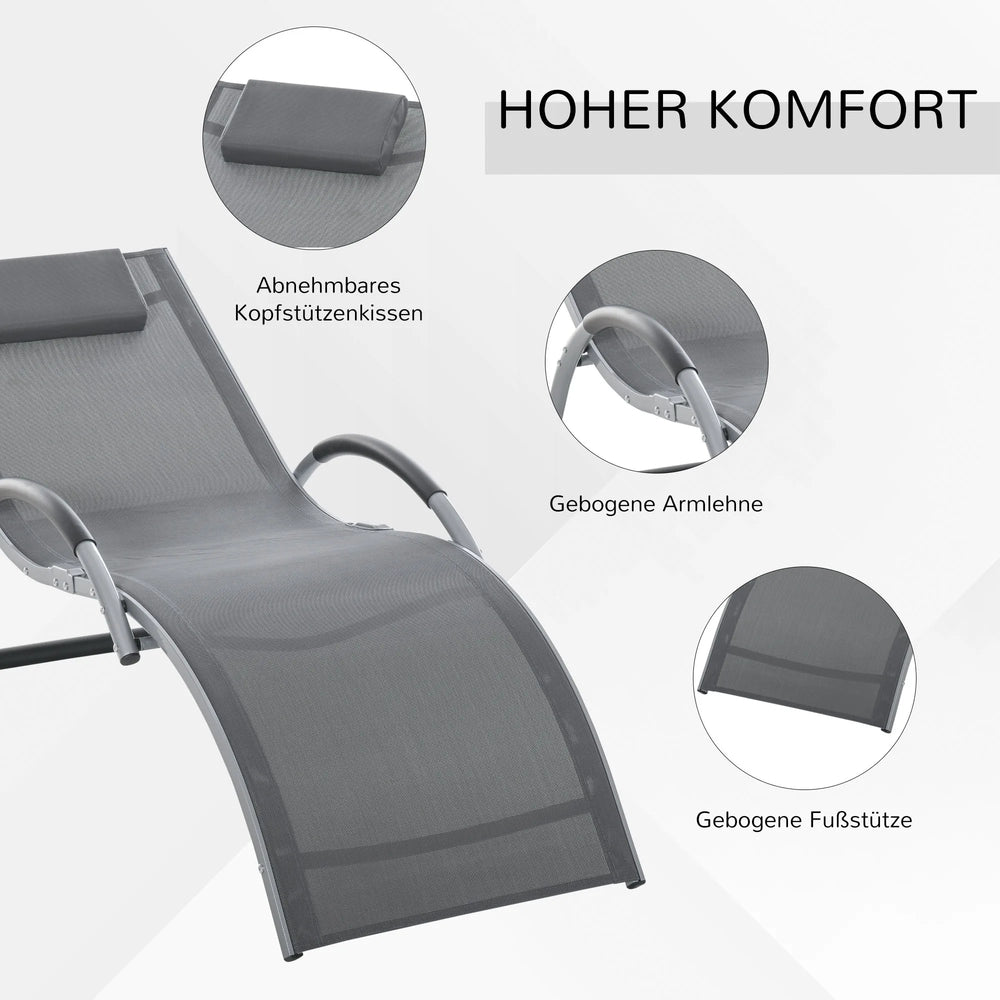 Outdoor lounging just got a lot better. Pair your days outside with this Outsunny lounger for complete relaxation. The frame is made from aluminium to be suitable for everyday use, is crafted into a smooth curved shape that better adapts to your body shape. It's fitted with a breathable mesh fabric seat that holds your body in place, with a removable pillow for extra comfort and support to the head and neck. Finished with foam pads on the armrests and bottom frame part for extra protection.