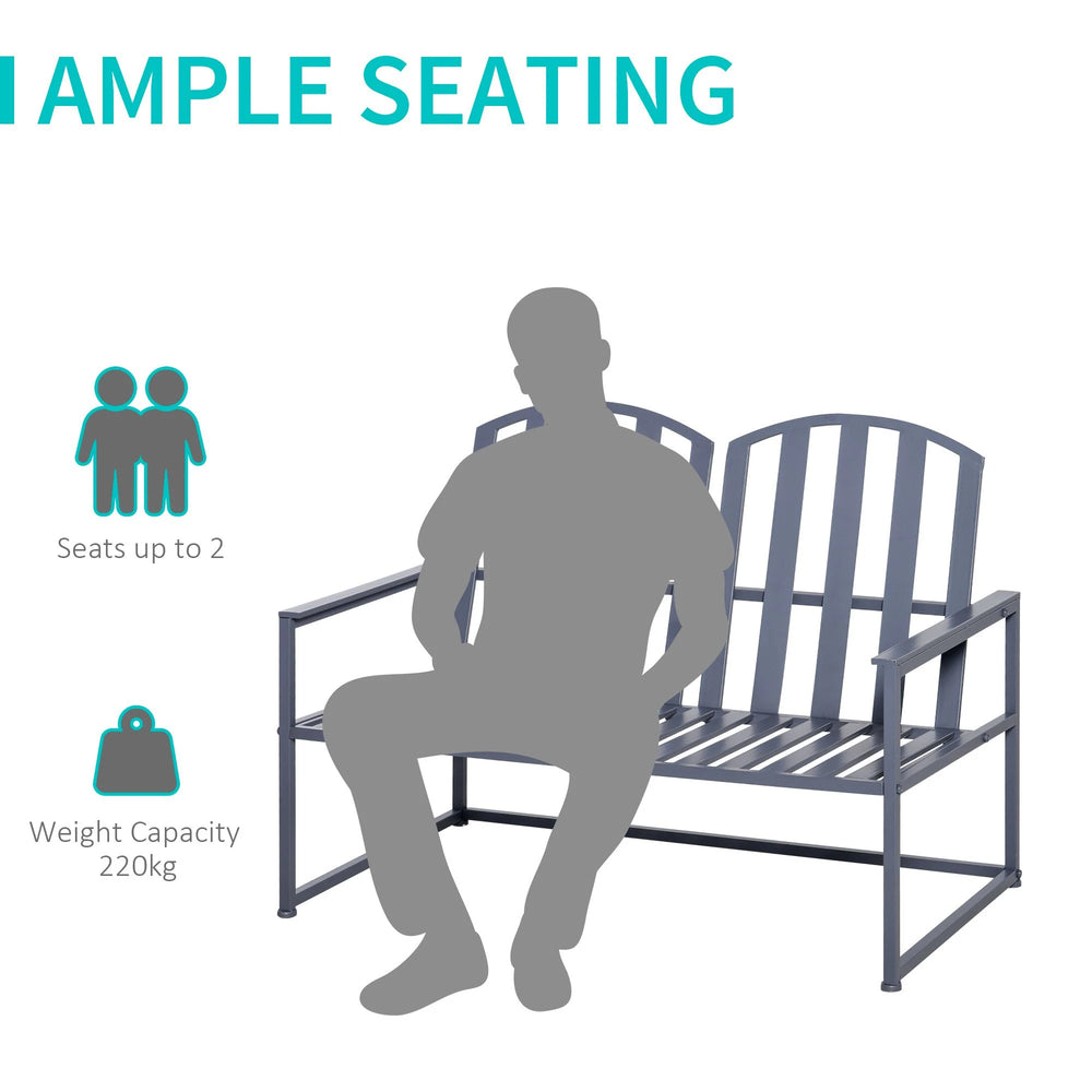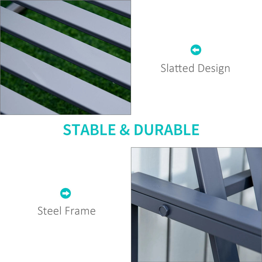 Outsunny Steel Patio Garden Bench Loveseats for Outdoors Park Yard Slatted Design Grey