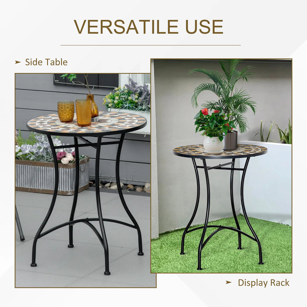 For a unique addition to your garden set-up and beyond, choose this Outsunny mosaic side table. A powder coated metal frame means it's tough and suitable for outdoor use; fitted with a colourful ceramic mosaic tabletop for plenty of character - whether as a garden patio table, indoor side table or as a plant stand.