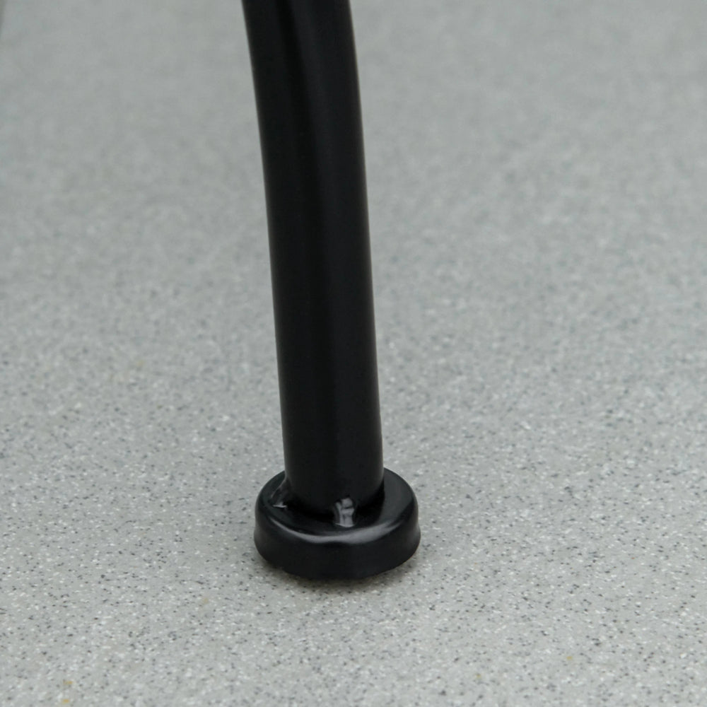 - Metal frame: Powder coated for extra strength, this round table is a tough piece, resistant to weathering and corrosion. Curved legs and bottom crossbar adds stability.