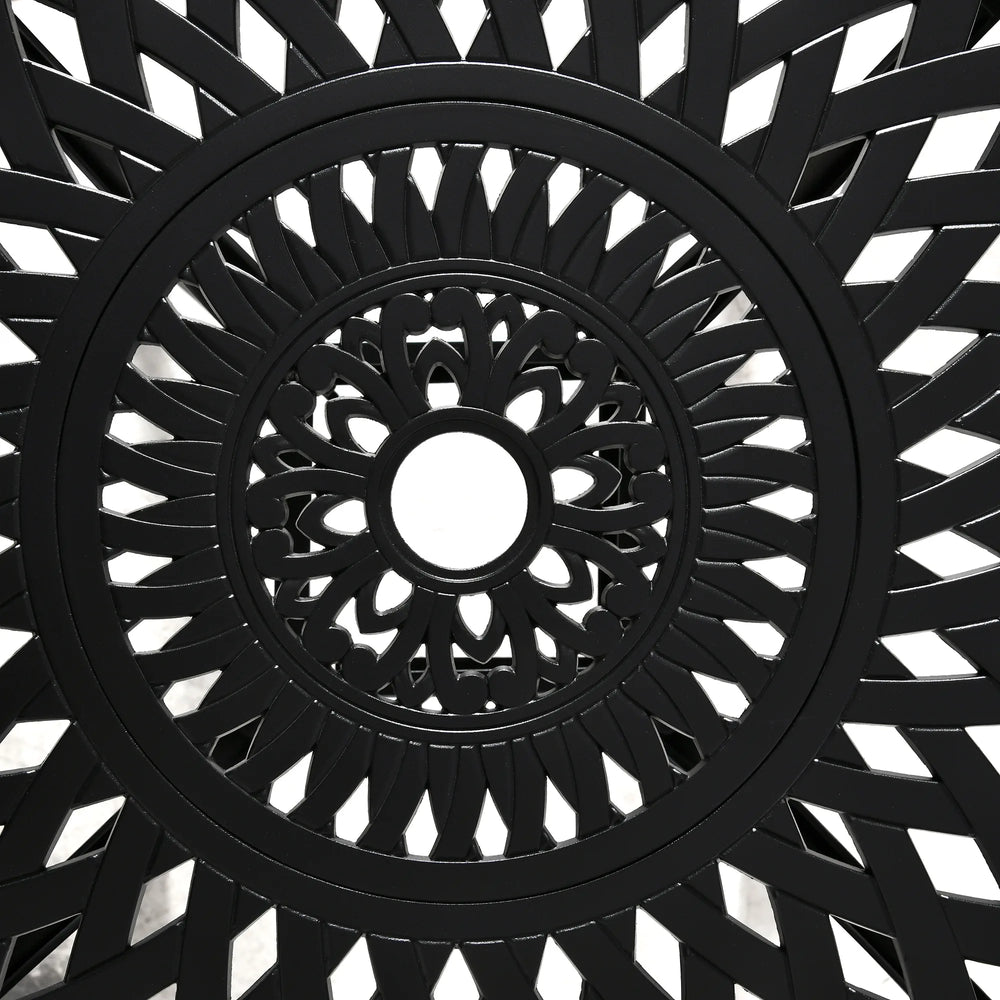 A handy holding spot, which also brings style into your garden and outdoor areas: this round bistro table from Outsunny. Cast aluminium is tough, with a powder coating for extra strength and protection. It's crafted into cut-out design for something a little bit different-great for those who like to make an impression. A middle hold is for holding a parasol umbrella to keep you shaded. To complete, pair with bistro chairs, so everyone can gather round.