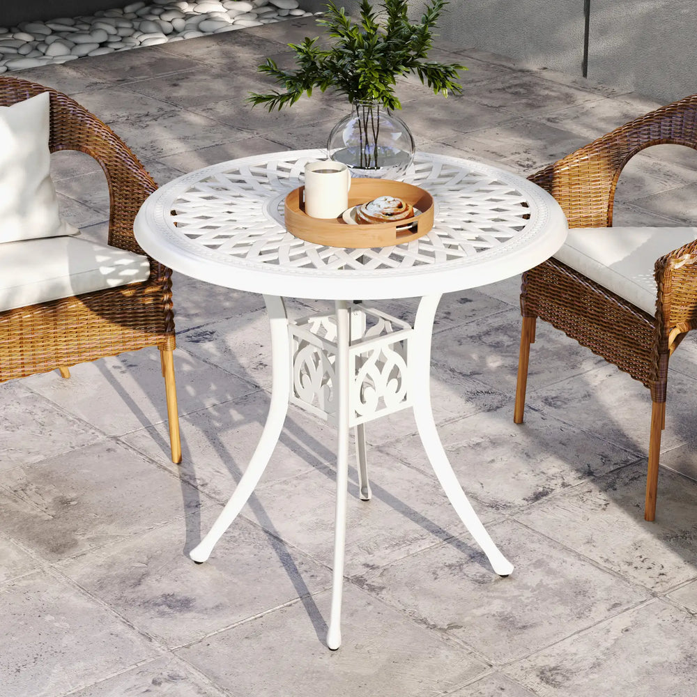 Outsunny 78 cm Round Garden Dining Table with Parasol Hole Antique Cast Aluminium Outdoor Table Only, White