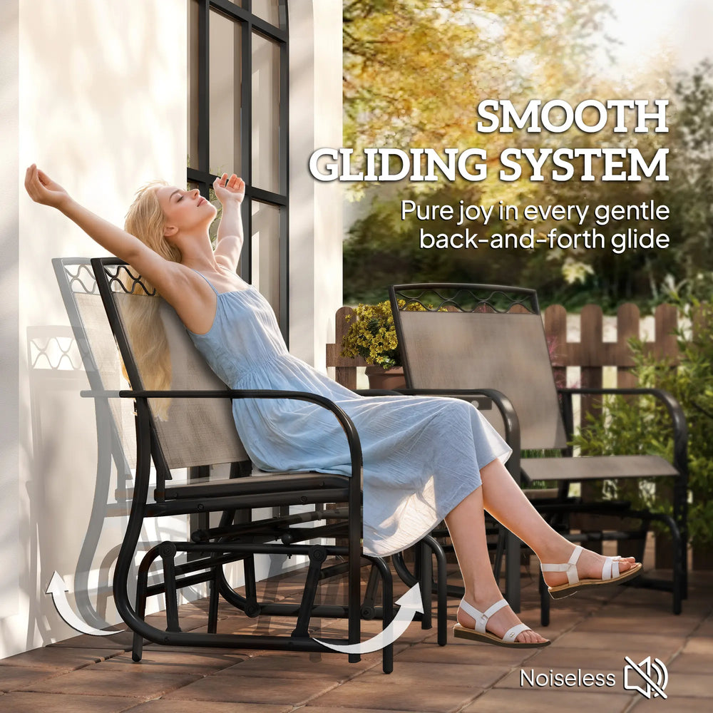 - ROCKING-STYLE CHAIRS: Seats glide gently forwards and backwards, moving gently in motion to keep you calm and help you relax even more. Cut-out patter on the back of the outdoor rocking chair for added style.