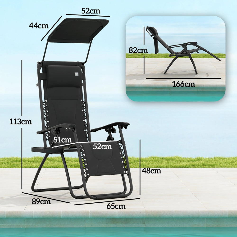 Outsunny Zero Gravity Lounger Chair Set of 2, Folding Reclining Patio Chair with Shade Cover, Padded Seat, Cup Holder, Soft Cushion and Headrest for Poolside, Camping, Black