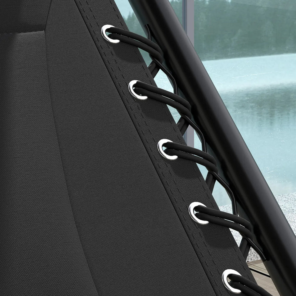 Let the day's stress drift away with this zero-gravity chair set from Outsunny. Its comfortable design evenly distributes your body weight to reduce back pressure and provides superior lumbar support as you sit. This piece of outdoor furniture allows you to relax while fully reclined to the most comfortable 'zero-gravity' position.