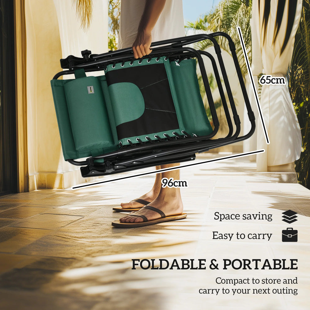 Outsunny Zero Gravity Lounger Chair Set of 2, Folding Reclining Patio Chair with Shade Cover, Padded Seat, Cup Holder, Soft Cushion and Headrest for Poolside, Camping, Green