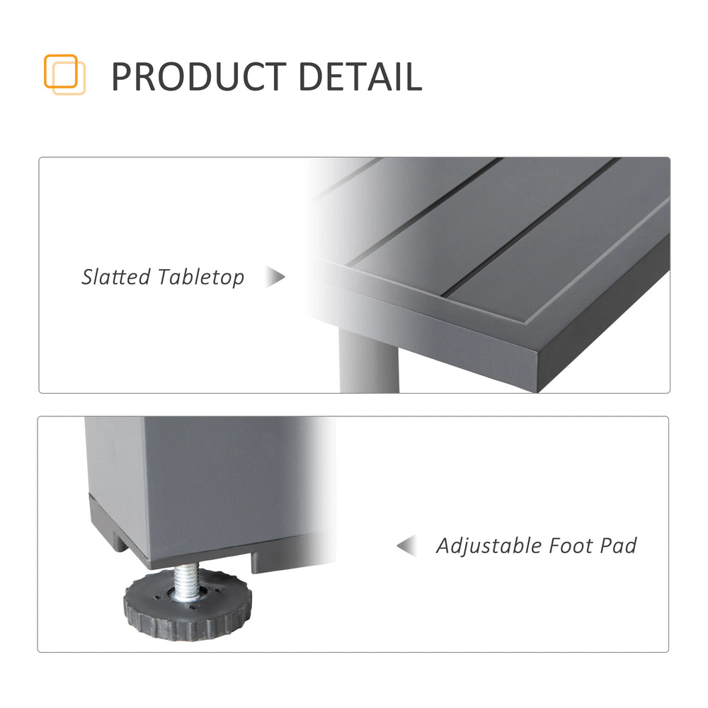Pick a stylish addition for dining, afternoon tea and parties on patios, decks and more, with this extendable garden table from Outsunny. The powder coated aluminium frame is sturdy and durable. The tabletop extends between 135cm and 270cm - seating between eight and people: a large table great for when friends and family come over!