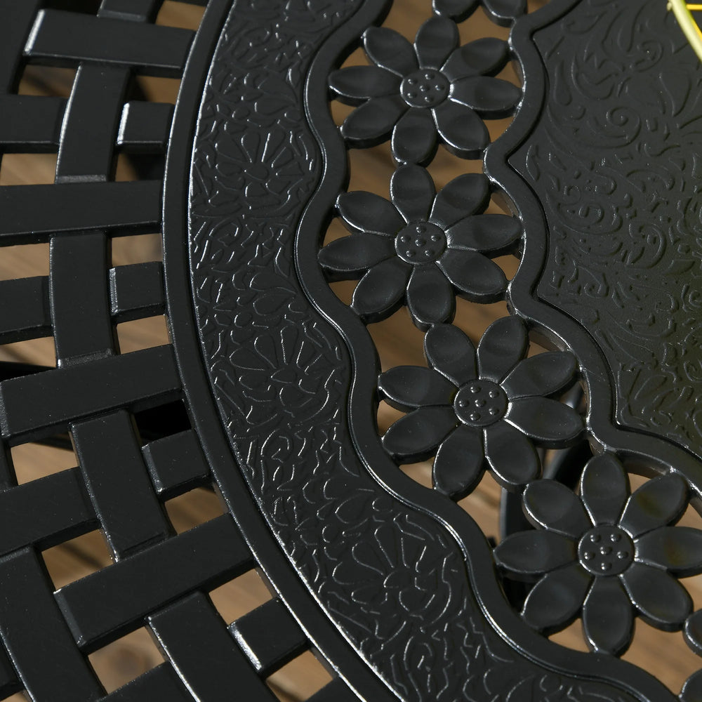 - FIVE PIECE ANTIQUE-STYLE SET: Beautiful black colour, with pretty diamond grid design. Includes four chairs and a round table, making it suitable for families and shared accommodation with friends. Suitable for (practically) all garden and outdoor areas.