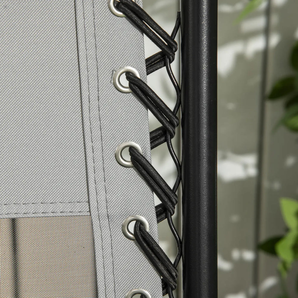 Outsunny Garden Recliner Chairs Set of 2, Outdoor Foldable Zero Gravity Chairs Set w/ Footstool and Detachable Headrest, Grey