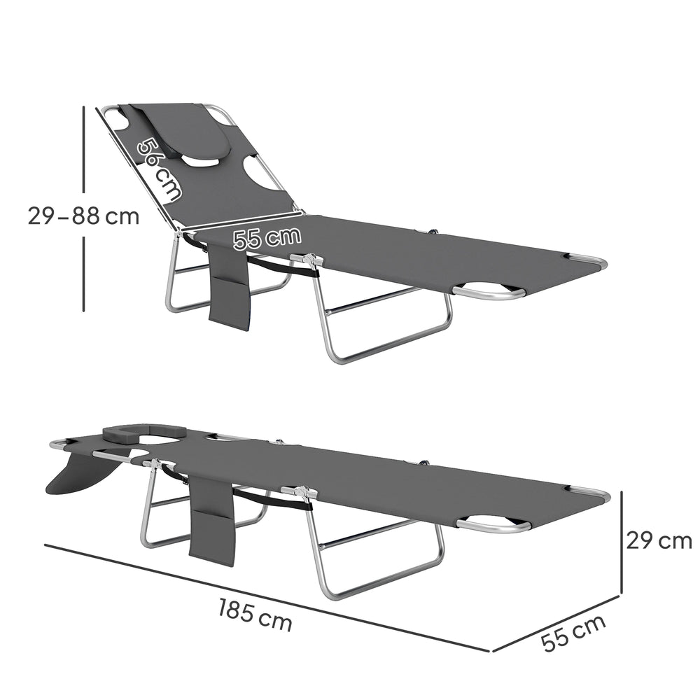 Outsunny Reclining Face Hole Sun Lounger - Dark Grey