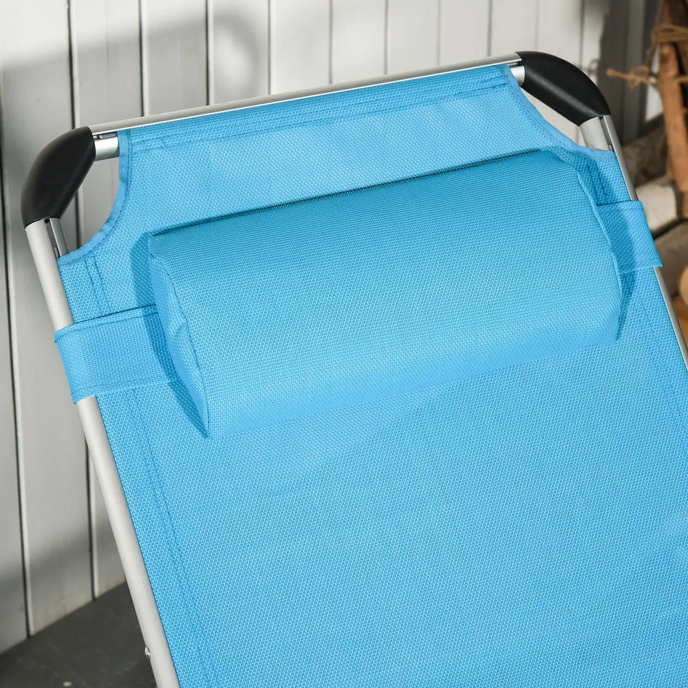Outsunny Foldable Outdoor Sun Loungers Set of 2, Reclining Lounge Chair Camping Bed Cot with Pillow 4-Level Adjustable Back Aluminium Frame, Blue
