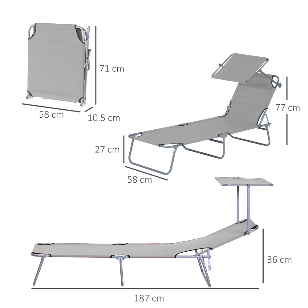 Outsunny 2 Pieces Outdoor Foldable Sun Lounger, 4 Level Adjustable Backrest Reclining Sun Lounger Chair with Angle Adjust Sun Shade Awning for Beach, Garden, Patio, Light Grey
