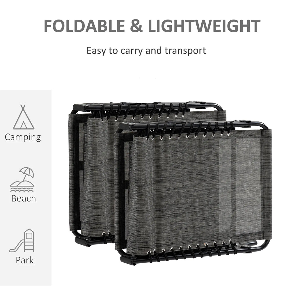 Outsunny Portable Sun Lounger Set of 2, Folding Camping Bed Cot, Reclining Lounge Chair 5-position Adjustable Backrest with Side Pocket, Pillow for Patio Garden Beach Pool, Mixed Grey