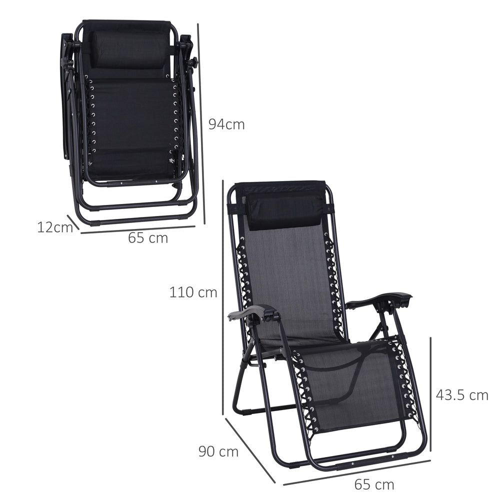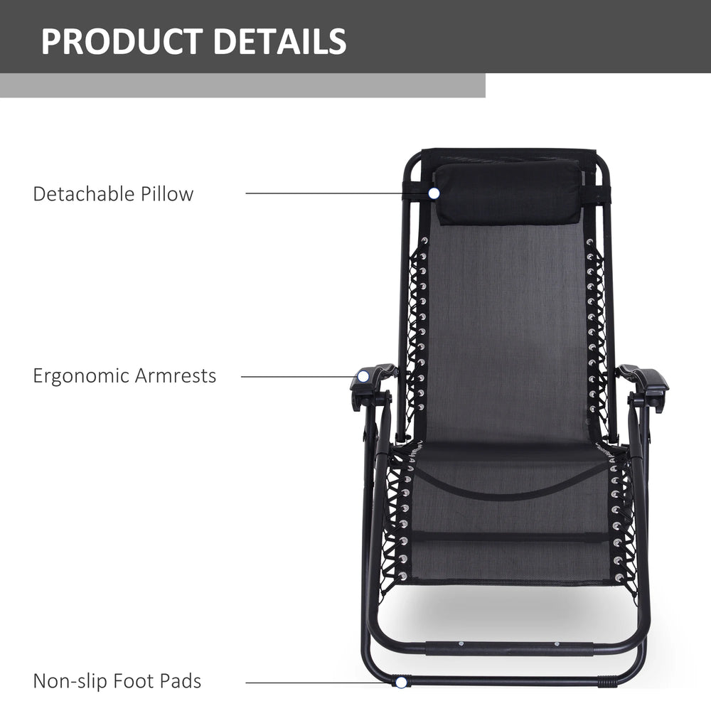 Outsunny Zero Gravity Chair Set of 2, Metal Frame Texteline Armchair Outdoor Folding and Reclining Sun Lounger with Head Pillow for Patio Decking Gardens Camping, Black