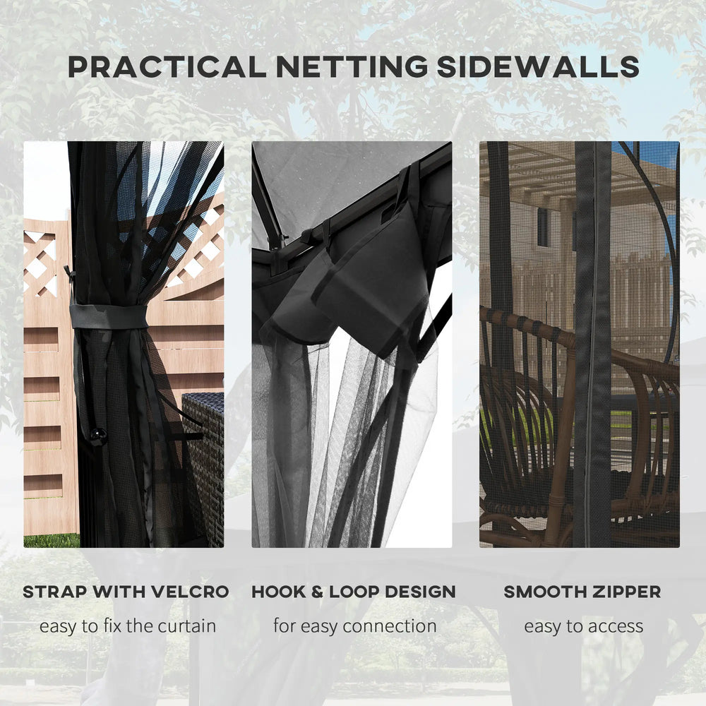 Outsunny 3 x 3m Garden Gazebo Patio Party Tent Shelter Outdoor Canopy Double Tier Sun Shade with Metal Frame and Netting, Dark Grey