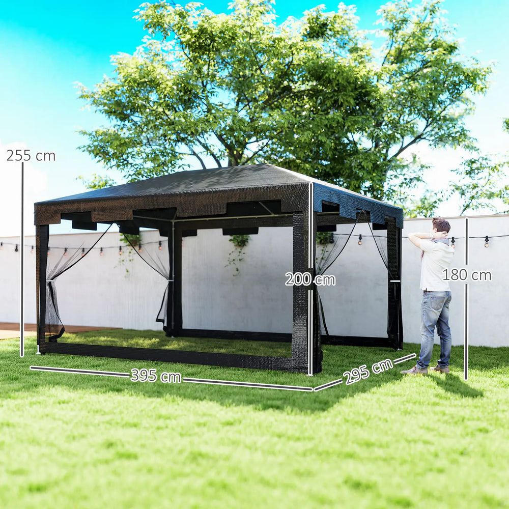 Outsunny 4 x 3 m Party Tent Wedding Gazebo Outdoor Waterproof PE Canopy Shade with Panel
