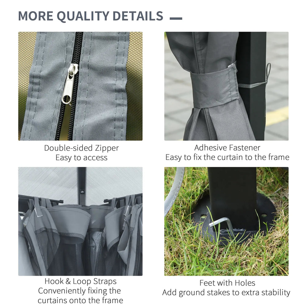 - FOUR CURTAINS: Creates privacy when wanted for a more intimate party experience, with netting to keep bugs and insects away. GROUND STAKES INCLUDED: Keeps the gazebo firmly in place to the ground for extra stability.