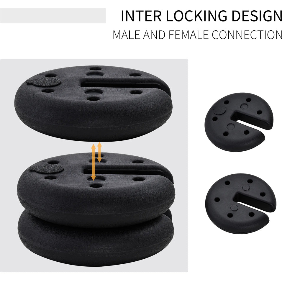 - Set of four disc shape weights for use with pop-up tents and canopies