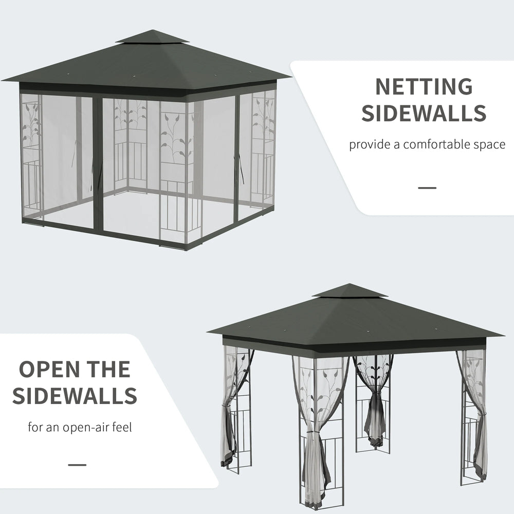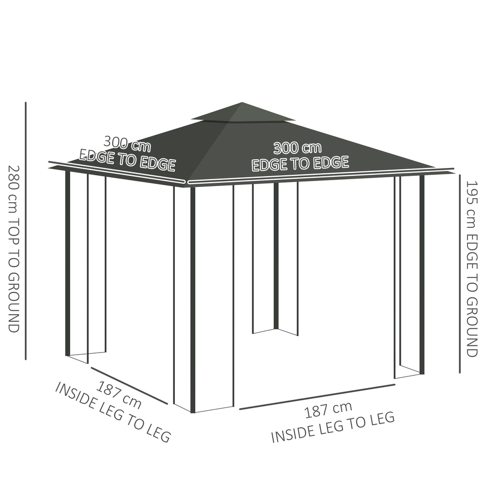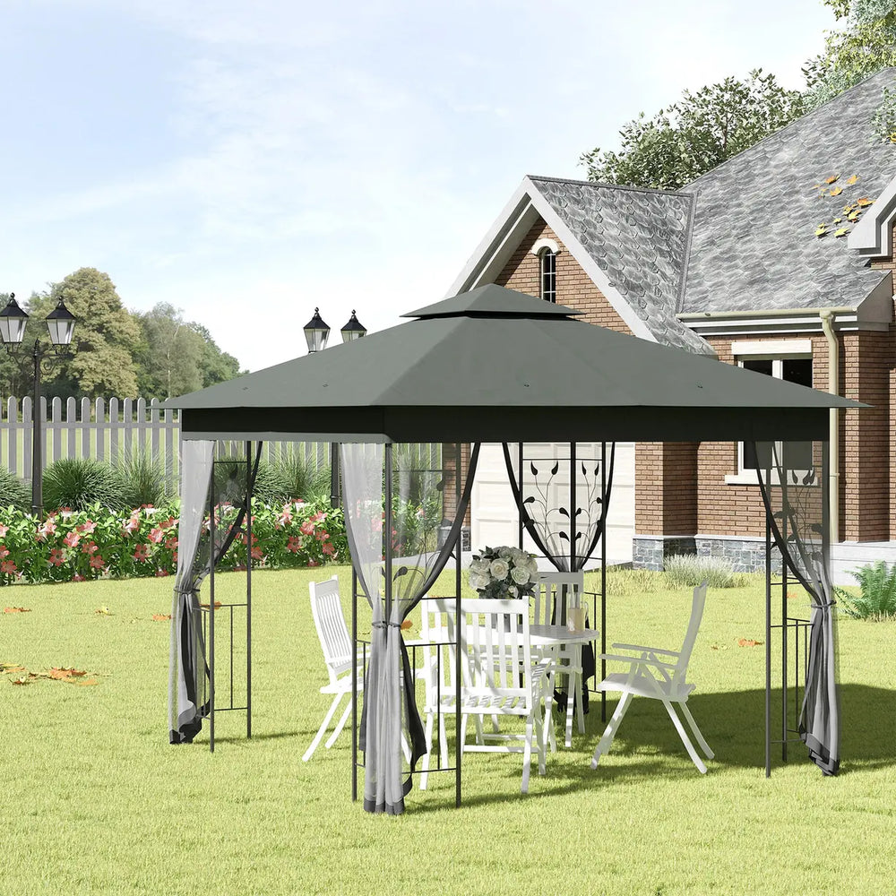 Outsunny 3 x 3(m) Steel Frame Double Roof Garden Gazebo - Grey