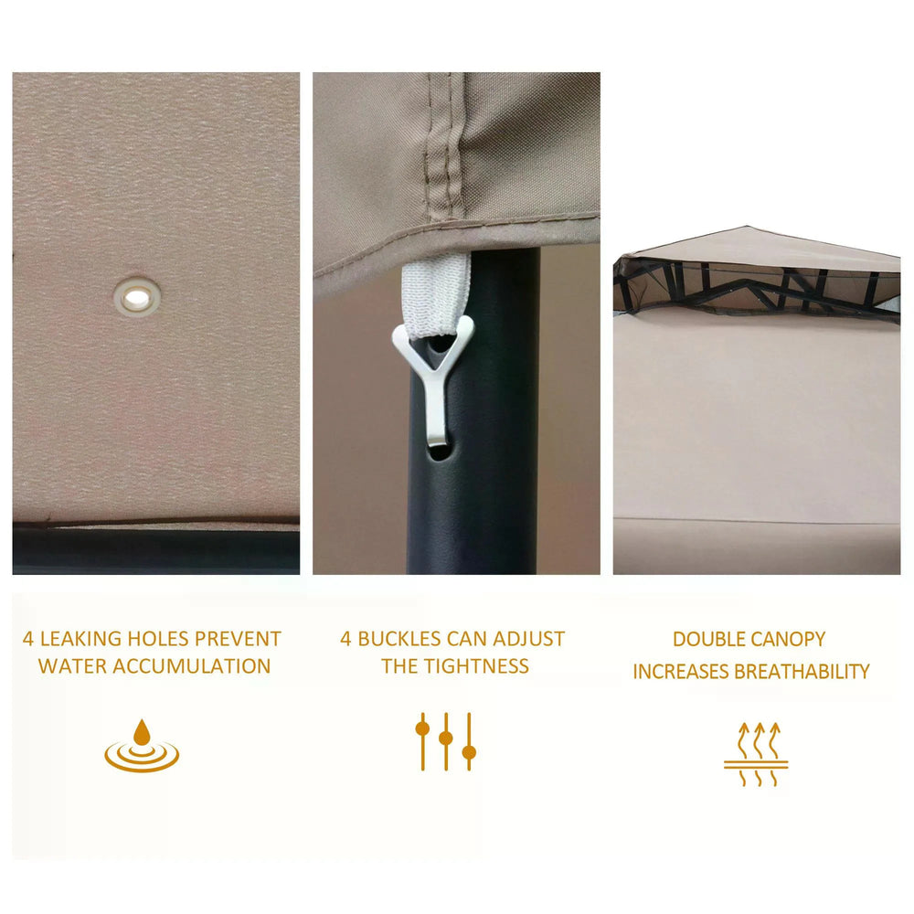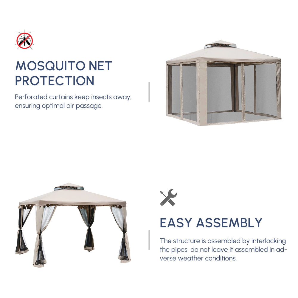 Outsunny Outdoor Gazebo, 2-tier Roof W/Netting, 295L x 295W x 263Hcm-Taupe