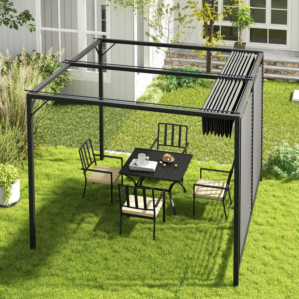 Outsunny 3 x 2.8m Metal Pergola, with Retractable Fabric Roof - Grey
