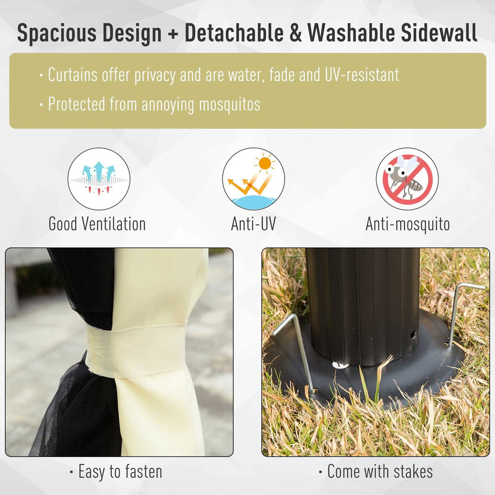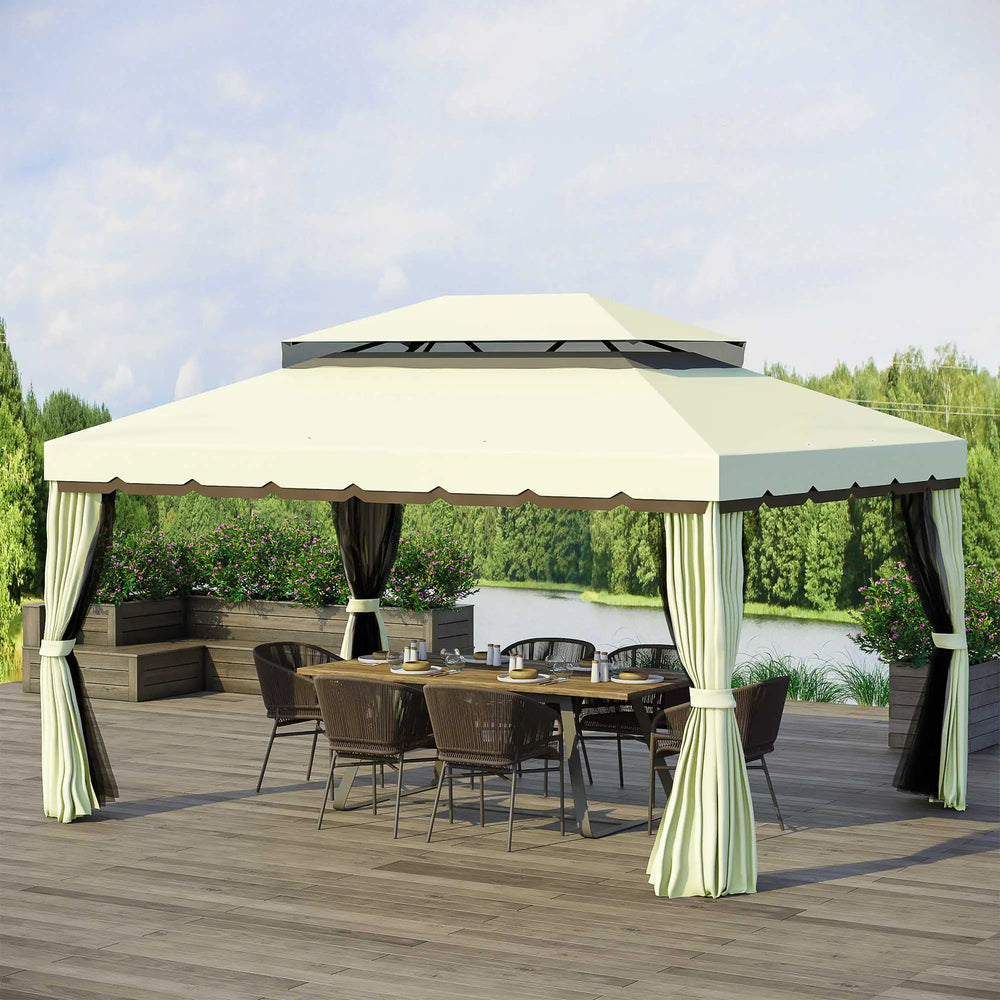 Outsunny 4 x 3 m Aluminum Garden Gazebo, Double Roof Outdoor Gazebo Canopy Shelter with Netting & Curtains for Garden, Lawn, Backyard and Deck, Cream