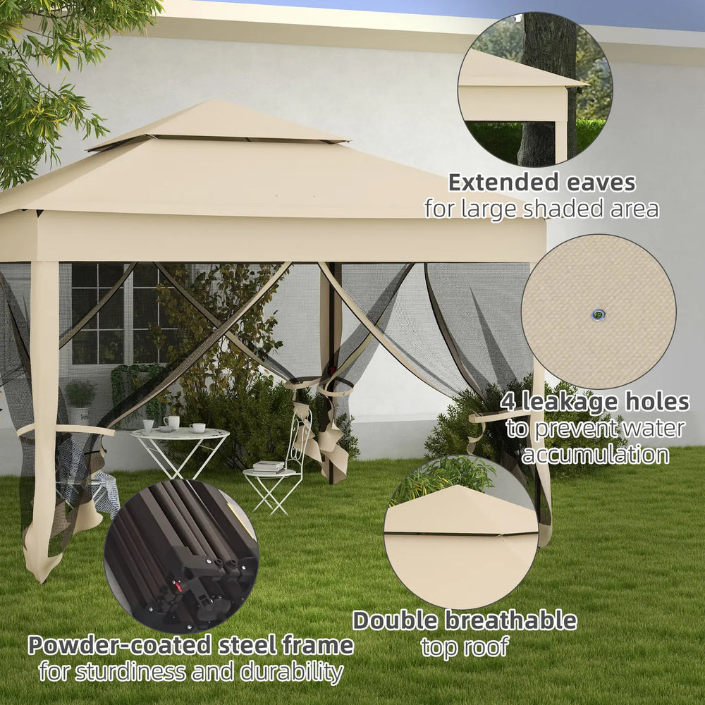 Outsunny 3 x 3(m) Pop Up Gazebo, Double-roof Garden Tent with Netting and Carry Bag, Party Event Shelter for Outdoor Patio, Cream White