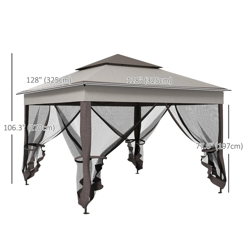 Outsunny 3.25 x 3.25m Pop Up Gazebo, Double-roof Garden Tent with Netting and Carry Bag, Party Event Shelter for Outdoor Patio, Brown and Grey