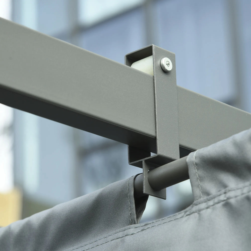 Outsunny 3.6 x 3(m) Outdoor Pergola with Retractable Roof and Curtains, Garden Gazebo Canopy Sun Shade Shelter with Aluminum Frame, Dark Grey is backordered and will ship as soon as it is back in stock.