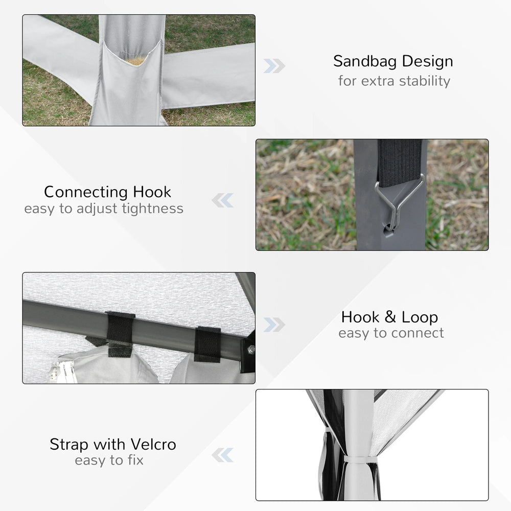Outsunny 3.2m Pop Up Gazebo Hexagonal Canopy Tent Outdoor Sun Protection with Mesh Sidewalls, Handy Bag, Light Grey