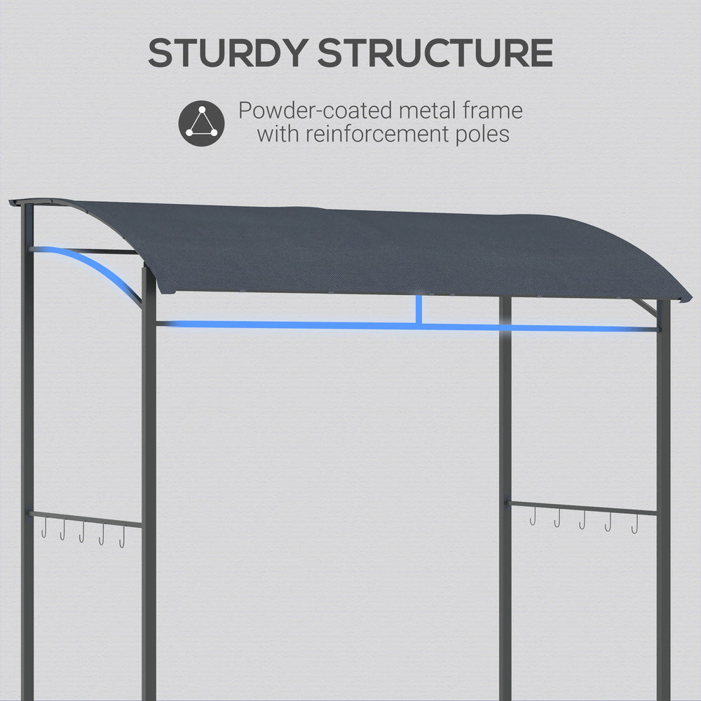 Outsunny 2.2 x 1.5 m BBQ Grill Gazebo Tent, Garden Grill with Metal Frame, Curved Canopy and 10 Hooks, Outdoor Sun Shade, Grey