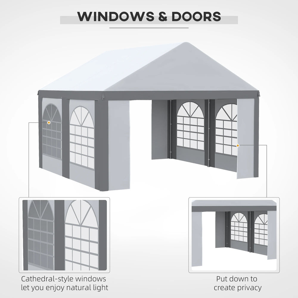 Outsunny 4m x 4m Marquee Gazebo with Sides, Level 6 Wind Protection & Waterproof, Light Grey