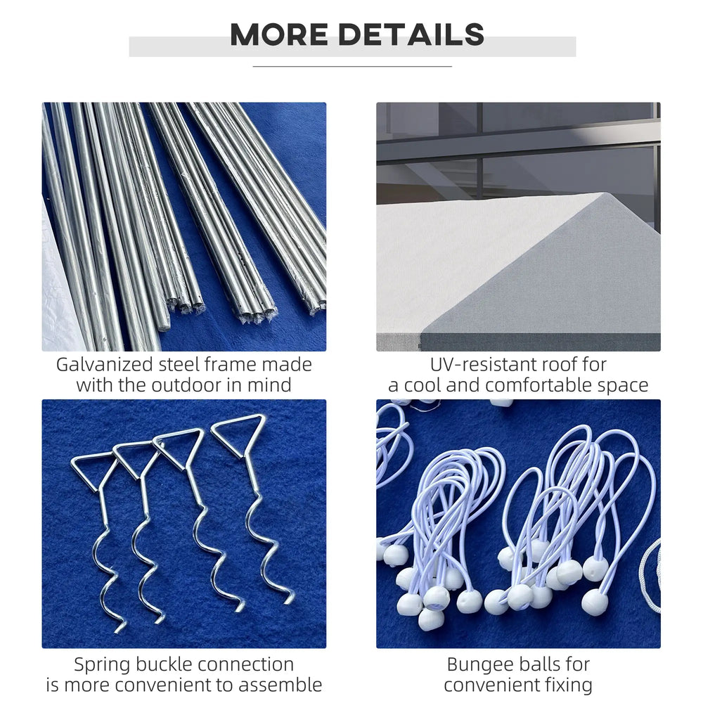 - Strong Galvanised Steel Frame: Built for stability and long-term use. Comes with four guy ropes, four spiral stakes and 20 ground stakes to secure the gazebo firmly.